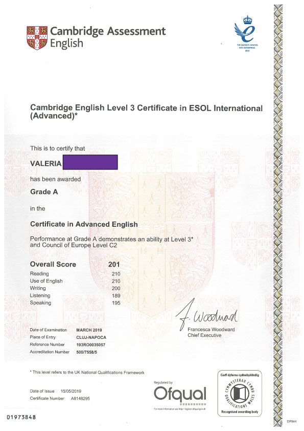 - Examen admitere în clasa a V-a engleză intensiv, Liceul Teoretic „Avram Iancu” Cluj-Napoca